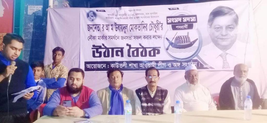 উন্নয়নের রূপকার যোদ্ধা হতে বীর মুক্তিযোদ্ধা জননেতা র আ ম উবায়দুল মোকতাদির চৌধুরী এমপি মহোদয় চতুর্থবার মত বিজয় করার লক্ষ্য উঠান বৈঠক ও কর্মীসভা অনুষ্ঠিত হয়েছে,২৬-১২-২৩ রোজ মঙ্গলবার এশার নামাজের পরে কাউতলী দক্ষিণ পাড়া শেখ হাবিবুল্লাহ রোড শেখ রহিম সরদারের অফিসের সামনে, উক্ত অনুষ্ঠানে সভাপত্বিত করেন বাংলাদেশ আওয়ামীলীগ ব্রাহ্মণবাড়িয়ার জেলা শাখার সাবেক কার্যনির্বাহী সদস্য সেলিম রেজা হাবীব ৷